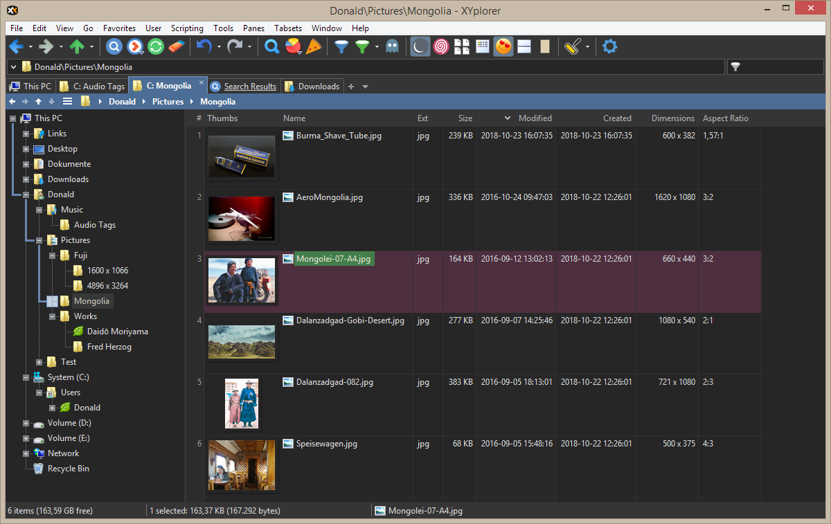 XYplorer 提供了一種您可能一直期待的特殊列表視圖:在詳情視圖中的縮略圖列。