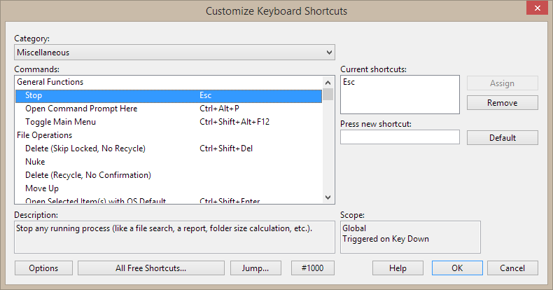 所有鍵盤快捷鍵都已預設預設值,但您可以完全自由地重新分配。可以使用 Ctrl/Shift/Alt 的任意組合(包括無修飾鍵)與幾乎任何按鍵搭配,併為每個功能分配任意多個不同的快捷鍵。