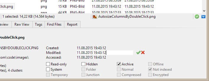 快速編輯所有選中文件的任何或全部文件日期(創建、修改、訪問)或文件屬性(如只讀、隱藏)。從 v12.50 起,時間戳支援毫秒精度,甚至支援十分之一微秒的分辨率。