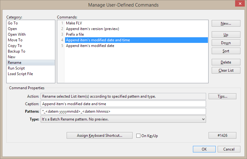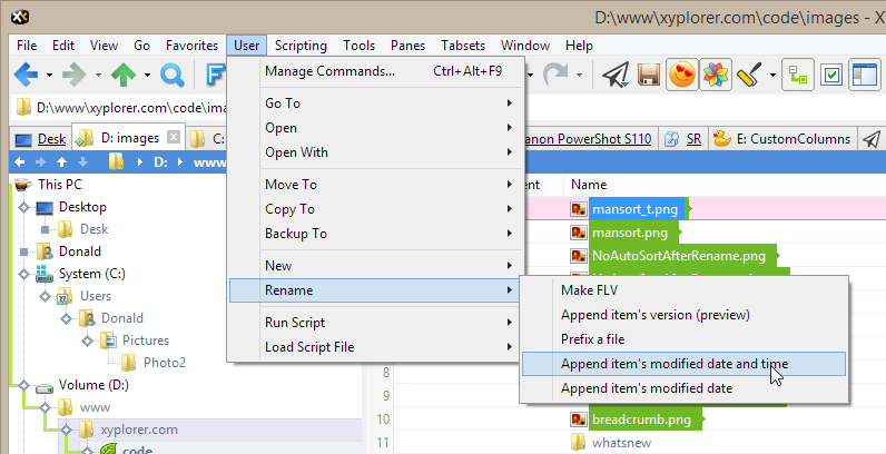 用最友好的方式編寫個人檔案管理例程。轉到、打開、打開方式、複製到、移動到、重命名……將這些任務包裝成自定義命令,它們會自動出現在新的"使用者"菜單中。給它們起個朗朗上口的名字,並分配鍵盤快捷鍵。UDC 意味著:將日常操作簡化為簡單的按鍵!