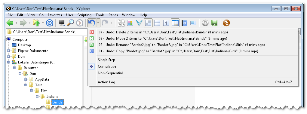 XYplorer 為移動、複製、重命名、刪除和新建等檔案操作提供多級撤銷/重做功能。最多記錄 100 個使用者操作,可在任何時候撤銷。操作甚至在會話之間保留,今天就能修復昨天的錯誤。