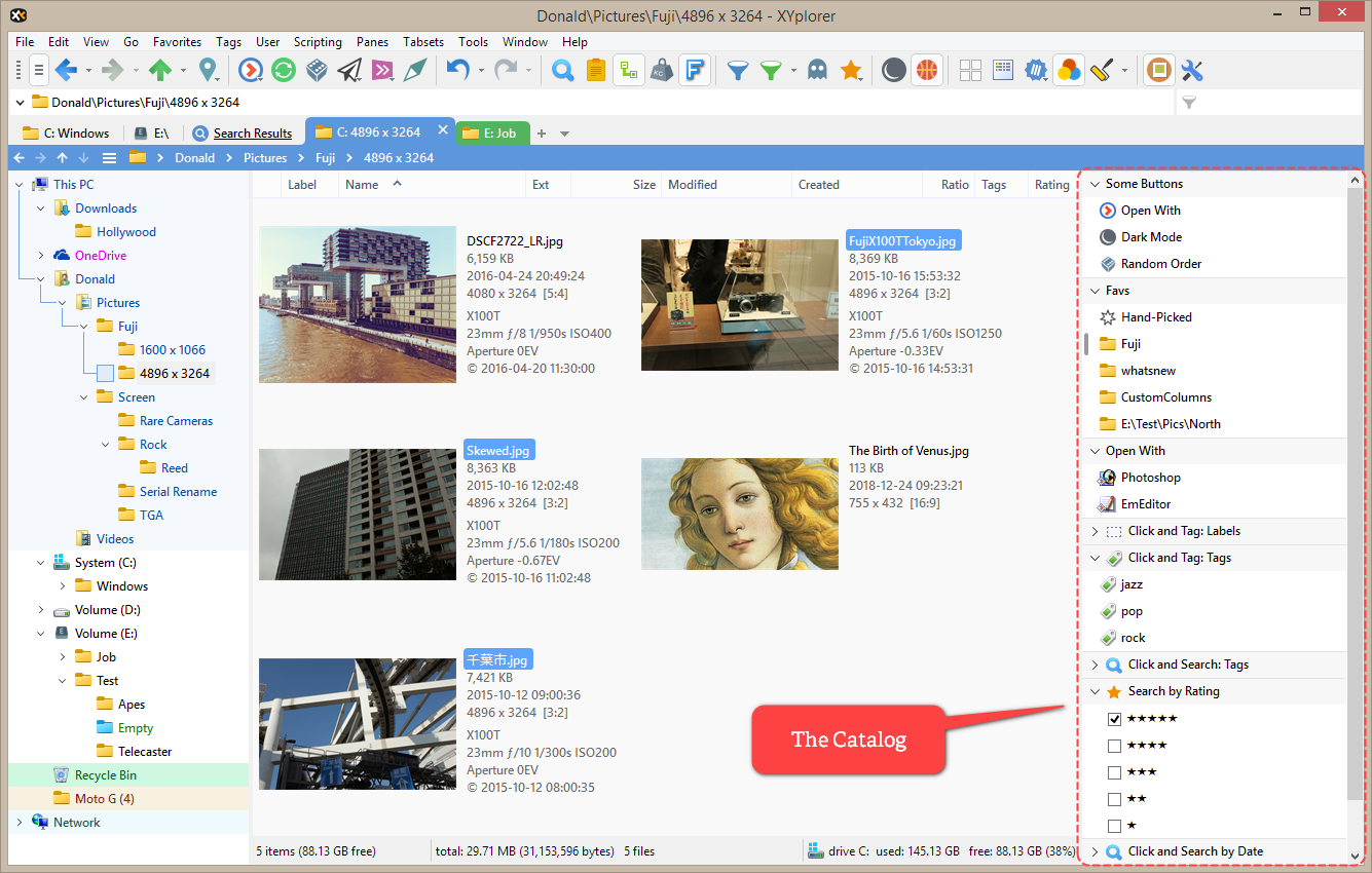 目錄面板是一個強大的滑鼠導向界面。預設位於資料夾樹下方。可以通過 窗口 | 顯示目錄 菜單切換,通過 窗口 | 排列 菜單重新定位。