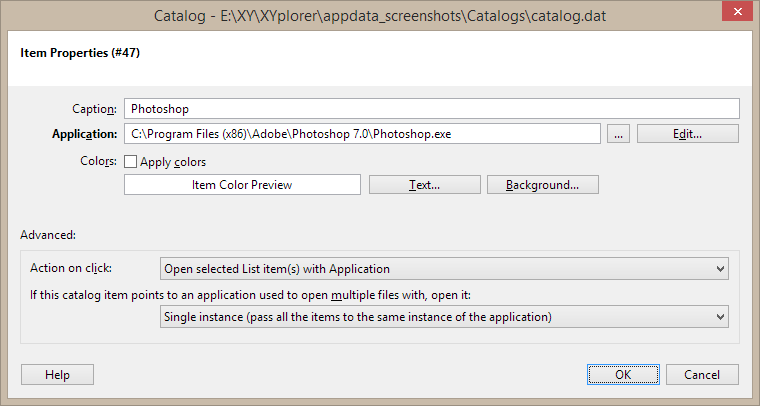 - 目錄面板還可以作為打開方式面板。將應用程式添加到目錄面板,然後通過項目的右鍵菜單打開其屬性,指定用於打開所有選中列表項的應用程式。